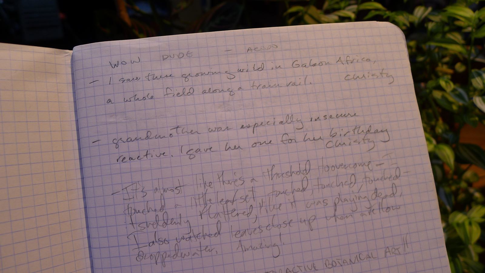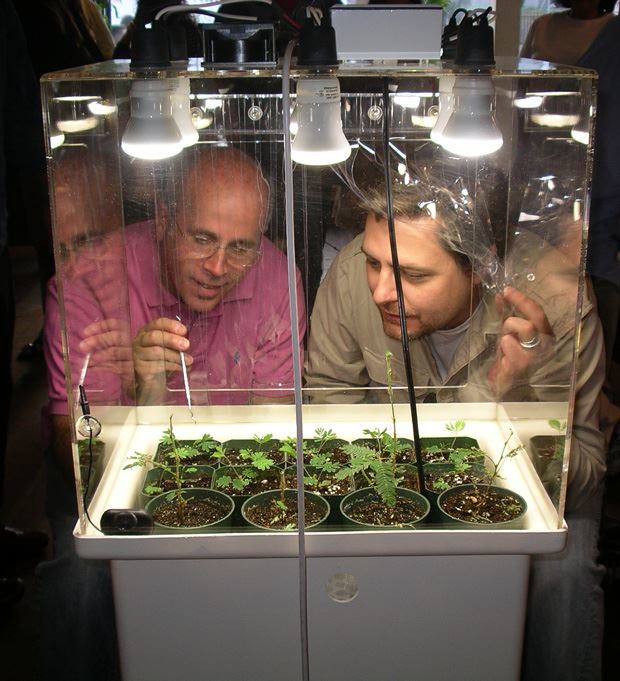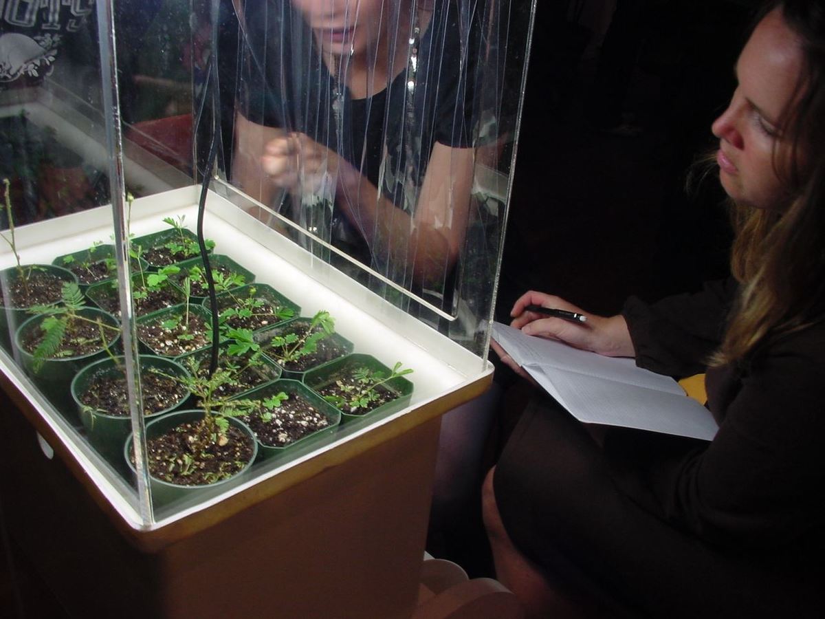 This interactive greenhouse of 'sensitive plants' was created for the Psychobotany show curated by Aaron Gach at Machine Project in Los Angeles. Visitors were encouraged to experiment with the plants and to record their observations in a lab notebook that I provided.