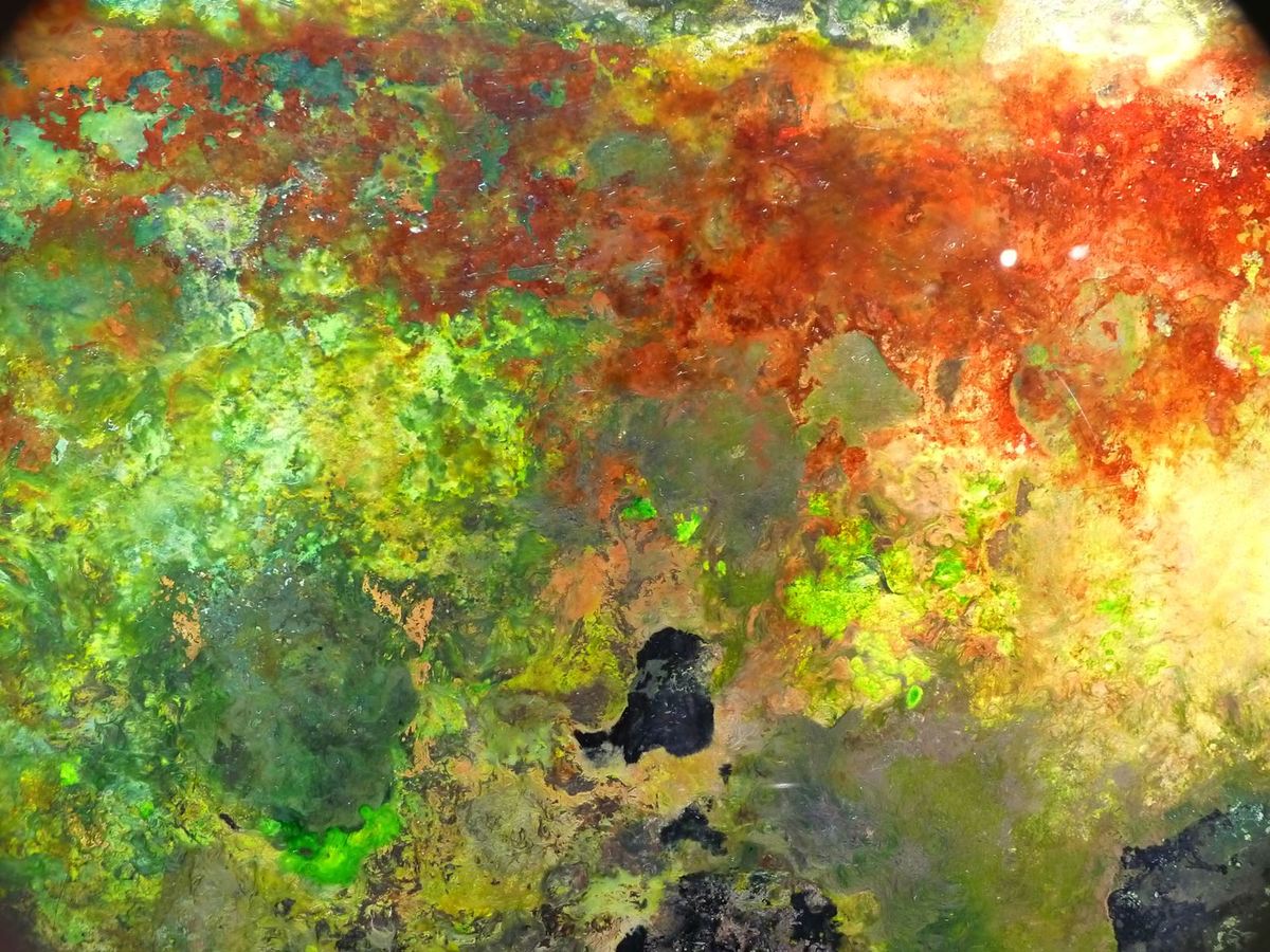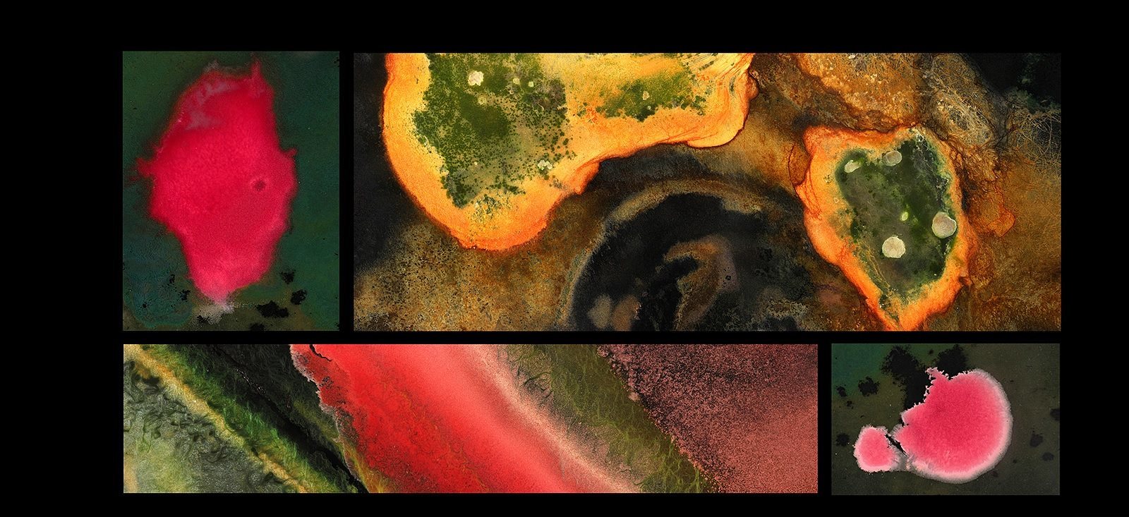 The colors are pigments used by photosynthetic bacteria to harness energy from light.