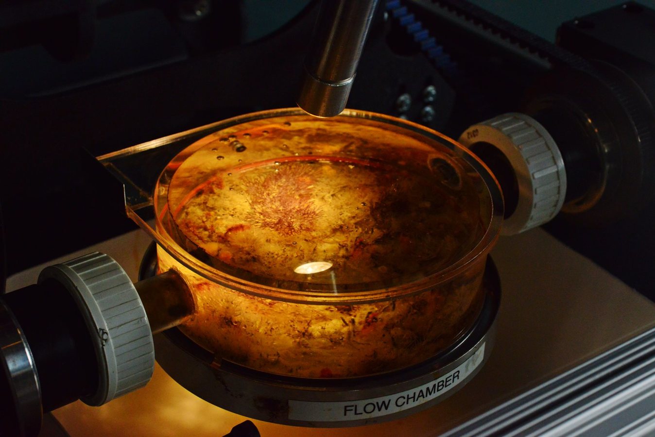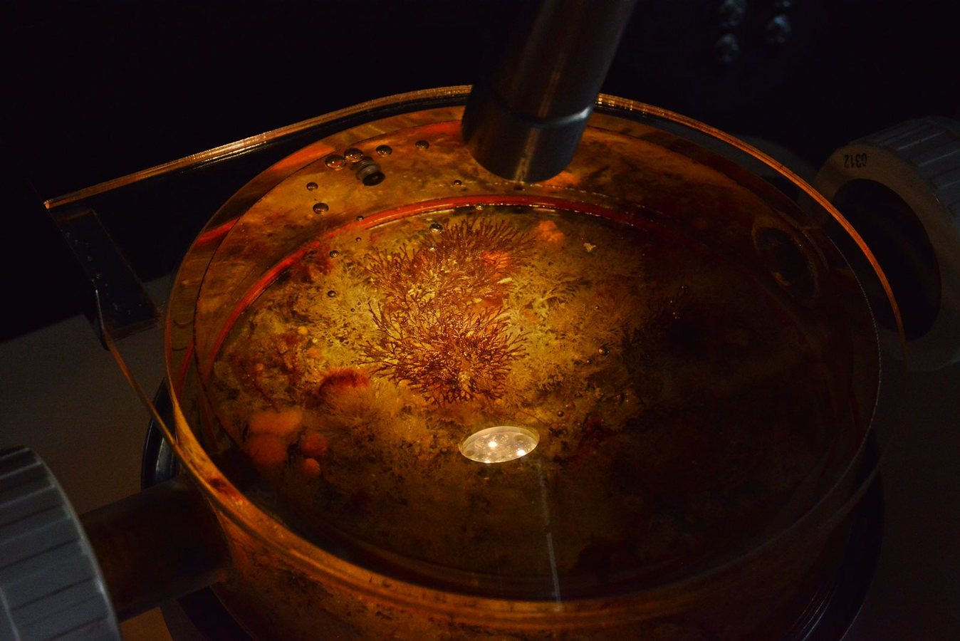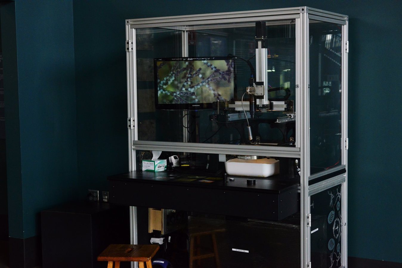This microscope-based exhibit lets visitors experience an underwater world. Put a glass plate underwater in the Bay, and a variety of organisms will settle and grow there.